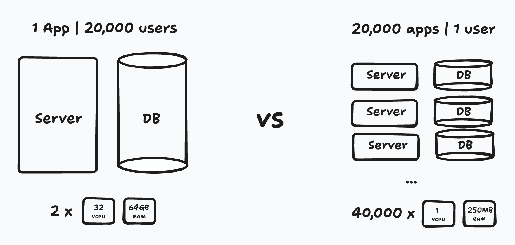 And when there’s overhead there’s friction. Today platforms freeze machines or limit how many apps you can spin up. In an era where every human can create lots of apps, this feels like a bummer.